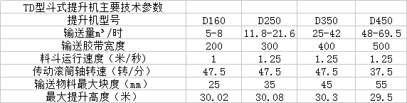 TD、D型斗式提升機適用于垂直輸送粉狀、粒狀、及小塊狀的磨吸性較小的散狀物料,如糧食、煤、水泥、碎礦石等,提升高度最高40m,其特點為:結構簡單,運行平穩,挖取式裝料,離心重力式卸料,物料溫度不超過60。C。TD型按JB3926-85《垂直斗式提升機》標準設計制造,與傳統D型斗提機相比,輸送效率高,料斗形式多,應優先選用。您可以根據您的產量的大小選著合適的機型。